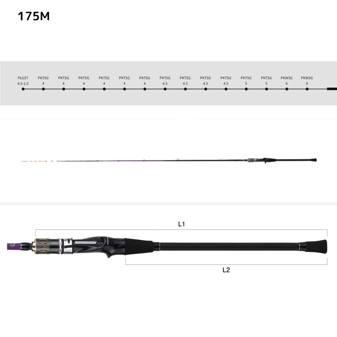 全長(m):1.75 継数(本):2(B) 仕舞(cm):142 標準自重(g):100 先径(mm):1.5 元径(mm):11.9 錘負荷(号):25-35 L1(mm):420 L2(mm):290 JANコード:4516508517811