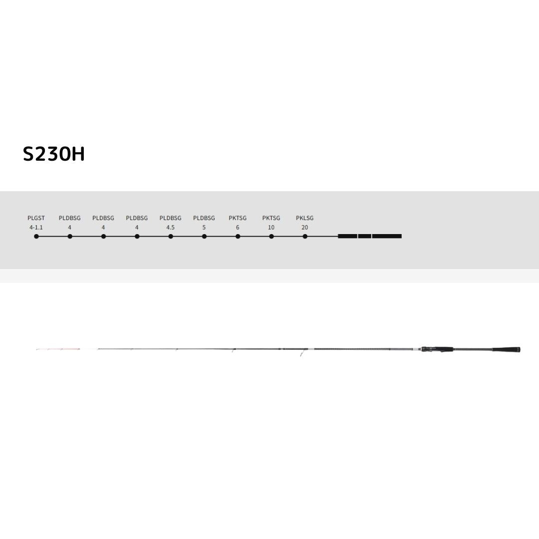 全長(m):2.3 継数(本):2 仕舞(cm):118 標準自重(g):101 先径(mm):1 元径(mm):12 錘負荷(号):4-20 JANコード:4516508519853