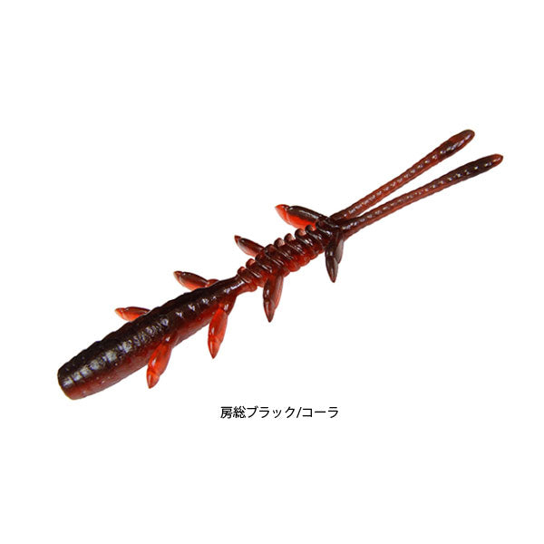 千葉県・亀山ダムのスーパーロコ川島勉が、人がさんざん撃った後でもバスを獲るために作った異形(いぎょう)のワーム。最大の特徴は逆に取り付けられた4対のアーム。このアームが水を受けてバイブレーション、それもややロールをともなう複合アクションを起こします。ボディはカバーにスルリと滑り込むコンパクト設計ですが、バスを寄せる力は強烈!より軽いシンカーでカバーの奥の奥まで入れて、アピール力の強い細かなバイブレーションでプレッシャーの高いフィールドでも釣果をもたらすことができます。シザーコームの特徴的なアクションはフォール、シェイク、ズル引き、バンピング、また弱い水流でも動くため、ステイ(放置)でも発生。さまざまなアクション、シチュエーションで使用可能なオールマイティワームです。