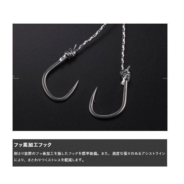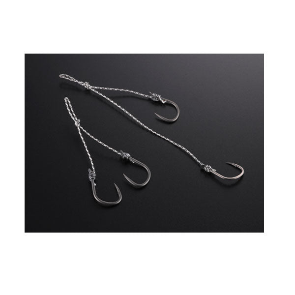 ビンビンスイッチに対応する純正スペアフックです。各サイズに適合する設定で、アクションとポテンシャルを最大限に引き出すセッティングです。段差”無し”仕様は、2本の鈎で口の中をガッチリと捉える事が可能。TG製品ヘビーウェイトの100g&120gと鉛式製品に関しては、大きめのヘッド合わせて段差”有り”仕様を採用しています。
