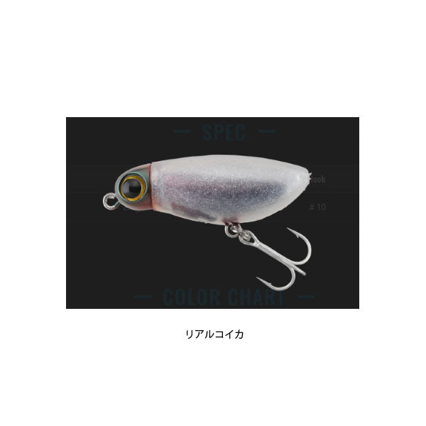 着水音を抑え、水面を漂わすペンシルタイプ 着水音を嫌うメバルは存在する。そんなメバルを攻略するために誕生したのがミュートボールです。プラスチックと軟質素材を組み合わせたハイブリッドボディは、着水音を和らげることで魚を散らしにくくします。さらに着水後もボディとフックの干渉音を抑えることで魚に違和感を与えずに誘います。ペンシルタイプのアクション 水面でわずかな波紋を立てつつ、フワフワと漂うように誘うペンシルタイプは、特にプランクトンを捕食している状況にマッチ。 ドッグウォークはもちろん、流れや風に乗せるドリフト釣法も得意とします。ミノータイプに比べ控えめなアクションで、魚がスレている時や食いが悪く渋い状況にも有効です。生命感を与える2層カラーリング 従来では出せなかった立体的なカラーリングを実現。コイカ、アミ、小魚など多彩なベイトに擬態し、プレッシャーのかかったメバルをも魅了します。