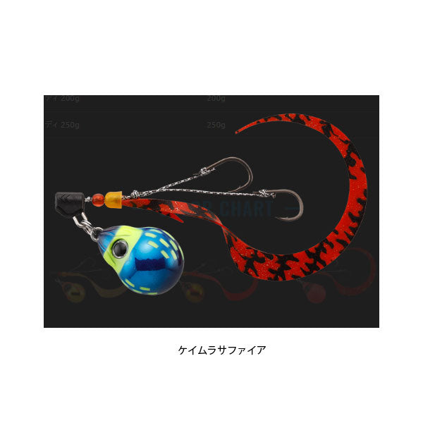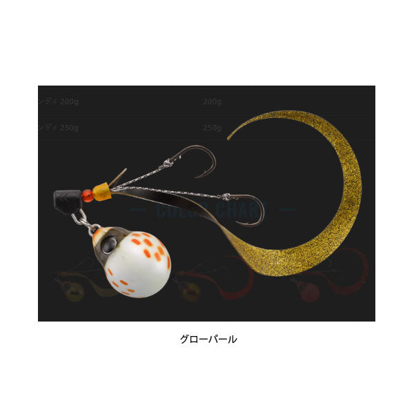 スイッチの可能性を広げる第二形態 釣法や状況を問わず活躍するオリジナルビンビンスイッチは、特に『縦』の釣り、いわゆるバーチカル釣法においてその真価を最大限に発揮。対してビンビンスイッチキャンディは、ドテラ・キャスティング釣法での『横』の釣りを前提に再設計。これら2つの形状を使い分けることで、スイッチの可能性は無限に広がります。専用設計のヘッド形状 ドテラ・キャスティングでは、縦ではなく斜めや横からの水流を受けます。超低重心かつ丸型に専用設計されたヘッドは、斜めや横からの流れを受けても微動だにせず、ネクタイのアクションを最大限に生かして誘うことができます。スイッチ独自の構造 オリジナルスイッチ同様、ヘッドをぶら下り式にセッティングし、ヘッドの上部からネクタイとフックが出るように配置。フォール時はヘッドが先行して沈下しするため素早いフォールを実現。また、着底時はヘッドが先にボトムに触れるため、根掛かりを軽減をします。あらゆる魚種がターゲット マダイはもちろん、ブリやヒラメ、アコウやカサゴなどのロックフィッシュまで、幅広いターゲットでオフショアゲームの楽しみを広げてくれます。