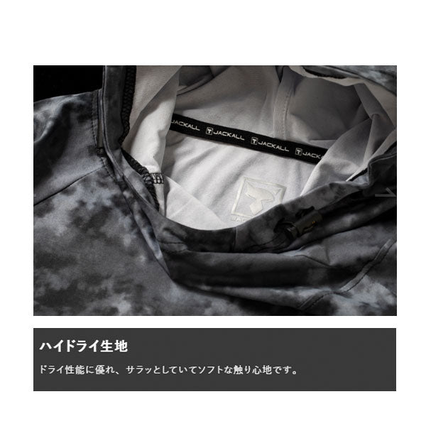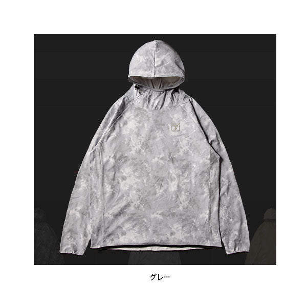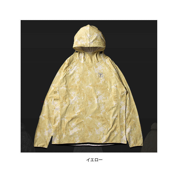超速乾で快適性が持続。 ハイシーズンの強い日差しから体を守り、さらに快適性能を追求したサマーフーディ。新たに採用した生地は、「HIGH DRY」。その名の通り、一般的なスポーツ基準の約1.5~2倍も早く乾く高機能素材です。十時型の異形断面ポリエステルとポリエステル系複合繊維をミックスすることでマットなタッチ感とソフトな肌触り、優れた速乾性を実現しました。またピリング(毛玉)が発生しにくく、ナチュラルなストレッチ性とキックバック(伸縮した生地が元に戻ること)を実現し軽量感もキープ。早く乾くことで汗冷え防止し、さらっとドライに着用することができます。ばさっと被れるプルオーバータイプと、脱ぎ着が楽なジップアップタイプの2種類がラインナップ。デザインはクラウド柄を採用した3色展開です。