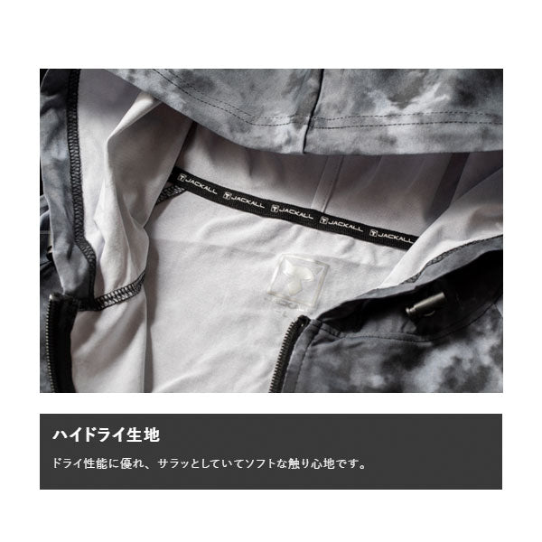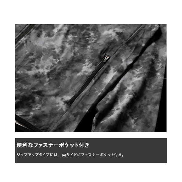 超速乾で快適性が持続。 ハイシーズンの強い日差しから体を守り、さらに快適性能を追求したサマーフーディ。新たに採用した生地は、「HIGH DRY」。その名の通り、一般的なスポーツ基準の約1.5~2倍も早く乾く高機能素材です。十時型の異形断面ポリエステルとポリエステル系複合繊維をミックスすることでマットなタッチ感とソフトな肌触り、優れた速乾性を実現しました。またピリング(毛玉)が発生しにくく、ナチュラルなストレッチ性とキックバック(伸縮した生地が元に戻ること)を実現し軽量感もキープ。早く乾くことで汗冷え防止し、さらっとドライに着用することができます。ばさっと被れるプルオーバータイプと、脱ぎ着が楽なジップアップタイプの2種類がラインナップ。デザインはクラウド柄を採用した3色展開です。
