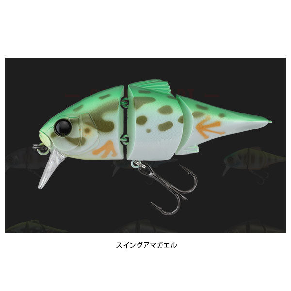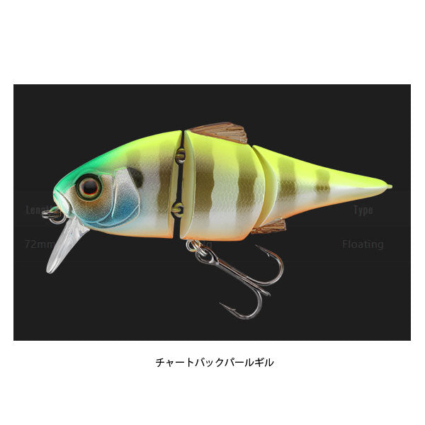 サーチベイトとして ジョイント部が小さくカチカチと音を立てながらアクションしバスを誘います。扁平のスイングテールがボディのロールアクションを抑えることで、クランクベイトとは一味違う波動とアクションが特徴です。ピンスポット攻略 ストラクチャーの際などの“食わせどころ”では、細かなトゥイッチでピンスポットをじっくり誘うのも効果的です。また、リトリーブを止めるとクネクネとボディを動かしながら浮上します。デッドスティッキング 抜群のアクションレスポンスで、水に浮かべておくだけで自発的にアクションします。エビや虫などをメインベイトとするケースで特に効果を発揮し、シェイクを加えるのもおすすめです。