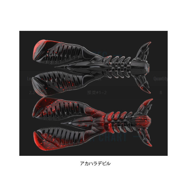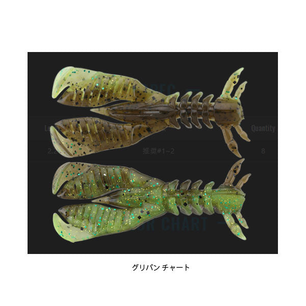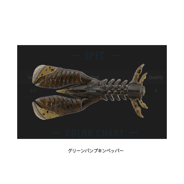 爪先のシャッドテール形状が“巻き”の際にしっかり水を掻きアピール。腕部は分厚く存在感がありながらも、スリットを上下で異なる向きに配置ししなやかに動くよう設計。着底後やアクション後の“止め”で、ワームが縦姿勢から倒れ込む際にしっかり水を押してバイトを誘発します。“巻き”と“止め”の2つの要素を高次元で併せ持ち、パイロットワームとして最適です。 2.2”に秘められた多彩なギミック 全長とボリューム感を微調整し、爪と胴体の接合部を若干後ろ寄りに設定。爪のボリューム感に反し、全体でみるとコンパクトに仕上げ、ひとくちでフックに到達するよう設計。また、チニングをより快適に、より釣れるものにするべく、開発者がこだわりにこだわった多彩なギミックを採用しております。詳細はFUTUREをご参照ください。 ボトムスイッチと相性抜群 フリーリグをチヌ専用に深化させた「ブリーカー ボトムスイッチ」と同時並行で開発が行われ、組み合わせの相性は抜群です。勿論、通常のチヌ狙いのフリーリグでも使用可能。それらで使用される#1~2のオフセットフックにベストマッチするサイズ感で仕上げました。