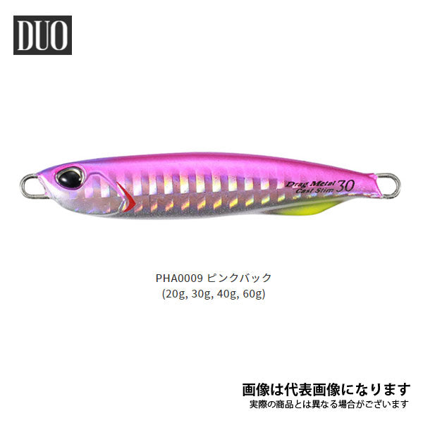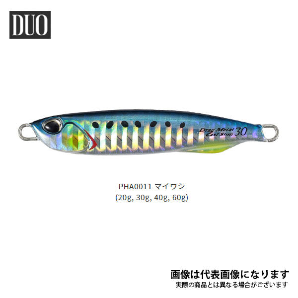 一般的なベイトフィッシュのフォルムに合わせたドラッグメタルキャストスリム。引き重り感が少なく、扱い易いセンターバランス設計により、タダ巻きはもちろん、多彩なロッド操作に機敏に対応。軽快でストレスのない安定したスイミング性能を誇ります。ロッドをシャクって止めて沈める『ジャーク&フォール』アクションでは、ヒラを打ちながらの強烈なフラッシングと、一瞬の喰わせの間を演出するフォール姿勢で喰い渋るターゲットを攻略。状況に応じてロッドのシャクり方やリトリーブスピードを変えればさらに効果的です。