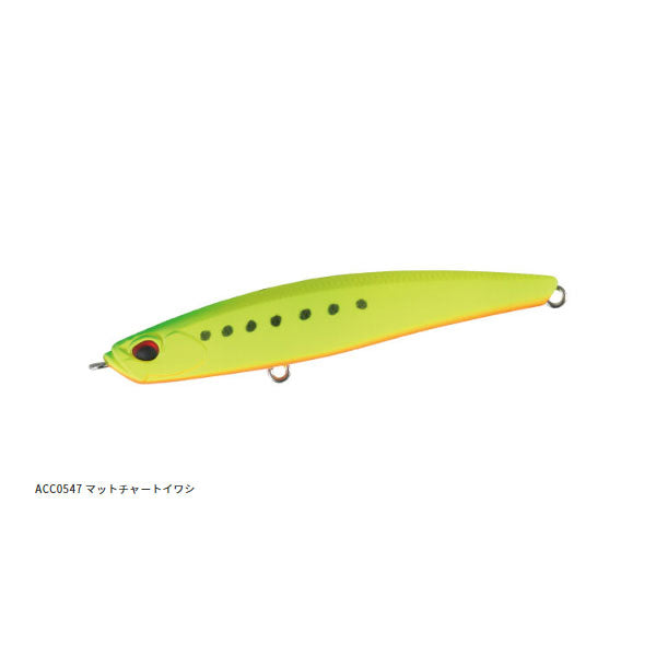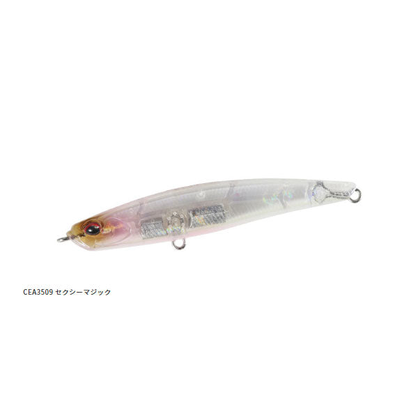 シークスライド、飛距離武装。 ヘビーウェイトモデル誕生!!卓越した巻き感度を持つシーク68に飛距離とレンジコントロール性に優れたヘビーウェイトモデルが誕生。ハイプレッシャーエリアではシーバスがアングラーから離れた場所に定位する事も多い。スレた個体には小型ルアーが効果的だが、軽量ゆえにポイントまで届かない。そんなジレンマを払拭し、小型ベイト偏食時の大場所攻略にも最適なモデルだ。