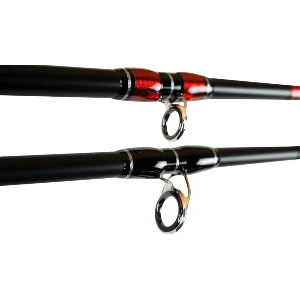All Round:24tカーボンをメイン素材とする事で、微細な前触れや潮流の変化も感じながら、オートマチックに魚を掛けた後はしなやかなバットパ ワーで自然と浮かせる、バラシの少ないアクション。 Technical Jerk:軽量で張りがある40tカーボンをメイン素材として、アクションも先調子寄りに設定することにより、より繊細なアプローチに対応。「攻め」のジャークやフッキングが可能。