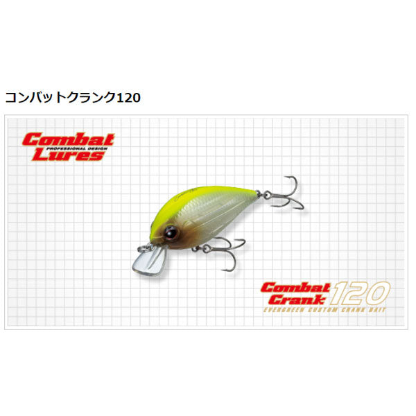 コンバットクランク120はタングステン重心移動システムと低重心固定ウエイトの採用及び、ボディ&リップデザインにより、信じられない程の飛距離をたたき出すシャローモデルです。シリーズ中、特に、陸っぱりアングラーにお薦めのモデルでもあります。ワイドスクエアリップ搭載により、シャローで有効なビビッドウォブリングがシリーズ中、最も強く、石系障害物のみならず、ウッドカバーにも強い回避性能を示します。また、良く飛び、投げ易いという特性は、同時に軽い力でのアキュラシーキャストをより容易に正確に決めてくれるでしょう。シャロークランクで必須なピンスポットキャスト&タイトトレースがよりイージーになり、逆風、強風をものともしないコンバットクランク120は、ボーター、陸っぱりを問わず、釣果を約束する強い味方です。