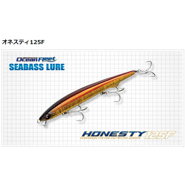 ハイプレッシャーなメジャーフィールドを制する、 可変フリーズアクション。 シーバスにプレッシャーを与えず素直にバイトさせる新感覚ミノー“オネスティ”。アクションはそのままにシャローレンジ攻略のために専用設計された“オネスティ125F”。サイズアップされたボディはタングステン重心移動システムによりストレスの無い飛距離を実現し河川、サーフ、干潟等、広大なフィールドを制します。ファストリトリーブではややローリング+ウォブリングアクション、ミディアムスピード以下では、ほとんど泳がない設定でシビアな状況にアジャスト。ストリームフィールドでは流れの微妙な変化やヨレを感知しアングラーに伝達する能力に優れ、素直にアクションが変化する事によりバイトチャンスも誘発します。シーバスの警戒心を解くミニマムアクションを極めた新感覚ミノー“オネスティ125F”。ハイプレッシャーなメジャーフィールドになる程、その真価を発揮します。
