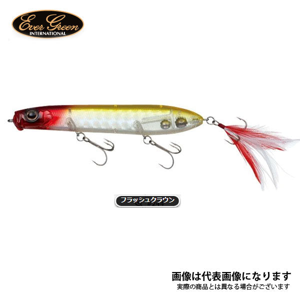 独特のビルデザインとフラットサイドボディーから繰り出す強烈なスプラッタースピット&バブル。大粒タングステンウエイトを配した、“水に突き刺さる”ラトルサウンドは、広大なエリアの魚にアピールし呼びよせます。更に空気抵抗の軽減も意識したボディー形状とウエイトバランスが、逆風下でも驚異的な飛距離を約束し、ワンキャストで探れる範囲がアクション、キャスタビリティーの両面から劇的に広がりました。テールに装備したフェザーフックは、アクションの“静”と“動”のメリハリの狭間の“余韻”として、魚がブレイクウォーターしにくいコンディションでも、“キスバイト”をストライクに持ち込ませ、フックの吸い込みをサポート。また、ボディーがビンビンに反応するため、アクションの強弱が、僅かなロッドワークでも簡単にアジァスト可能な点も特筆モノ。より遠くの魚を激しいアクションで呼び寄せたい時、ナーバスな魚をソフトな波動で誘いたい時など、その日のコンディションによる、魚のアクションの好みの差もこれ一本で余裕で対応します。絶妙の水がらみを誇るボディーバランスで、従来、トーナメンターの高等テクとされた、エッジの効いた連続クィックターンをボディーが水面に飛び出すことなく、たやすく演出でき、バスに追われ逃げ惑うベイトフィッシュアクションで、魚のスイッチが強烈に入ります。アングラーの腕への負担を大幅に軽減しながら、いままでやりづらかった“あのアクション”が思いのまま。シャワーブローズの驚きのアビリティーをあなたのものにしてください。
