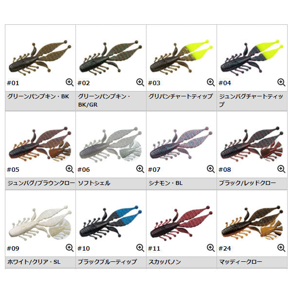 菊元俊文デザイン「キッカーバグ」は、摩訶不思議な各パーツが各々別の動きを演じるバルキークローです。先端がボール状のレッグは独特の微振動を生み、フラッピンシザースは大きく水を動かし、着底後の倒れ込みでバイトを誘発。そのシルエットと独特のアクションはデカバスの本能を刺激し、強く深いバイトを誘発します。