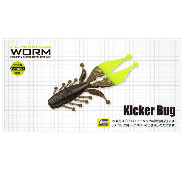ジグトレーラーは勿論、テキサスリグ、ヘビーダウンショット、ヘビーキャロライナからノーシンカー、ネコリグまであらゆるリグでデカバスの実績を誇ります。デカバスキラーの異次元生命体「キッカーバグ」。
