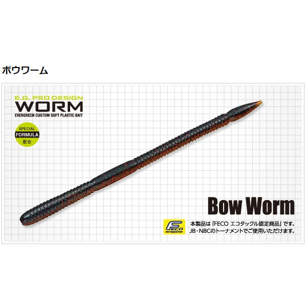 前後逆リブ構造が水を掴み動かすランカーキラーのストレート。菊元俊文デザイン「ボウワーム」は、前後逆リブ構造が水を掴み動かすストレートワームです。ボウ(弓)のごとくしなり、着底後の倒れ込むアクションと微振動は、デカバスを魅了します。