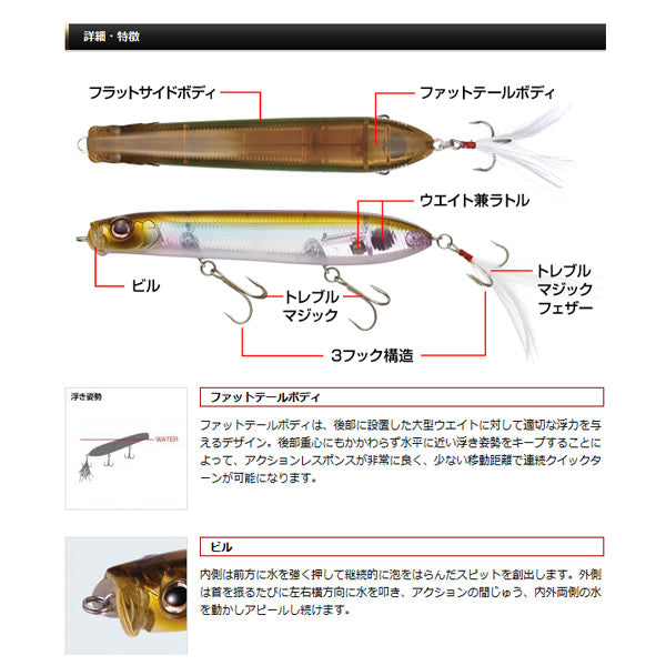 ---------- ビッグバスを獲る能力はもちろんシリーズ中最強。さらに、他のトップウォータールアーでは手が出せないような強い風や波、流れの中においても圧倒的な存在感を放ち続けます。