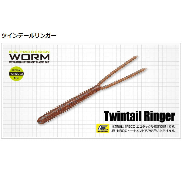 あらゆるリグに対応する魅惑のツインテール。ツインテールリンガーはボディ部のリングデザインのみならず、細身のテール部にもマイクロリングデザインを施したツインテール・リングワームです。ネコリグ、ドロップショットリグ、テキサスリグ、キャロライナリグ、スプリットショットリグ、ノーシンカーリグからラバージグトレーラーとして、あらゆるリグに幅広く対応。適度に張りのある高比重ソルトボディとリングリブで水を掴んで動かします。さらに、水を掴みやすい形状のリングテールは、左右別々に微振動することでバスの本能を確実に刺激します。その姿はバスからは喰いやすい手長エビや、時には襲うべき逃げ惑うベイトフィッシュに見えているに違いありません。また、シュリンプ、イカ、ベイトフィッシュのスペシャルフォーミュラを配合。視覚だけでなく嗅覚も刺激することで、さらなるバイトを誘発するだけでなく、バスが口に入れたときに生物的感触を持つリング形状と相まって、バスが離しにくくミスバイトを減少させる効果も高めました。張りのあるボディ&複雑な微振動を生み出すツインテールはスピナーベイトやブレーデッドジグのトレーラーとしても最適。ハードな使用に対応しながらも、複雑にうねるようなアクションでバスを魅了します。