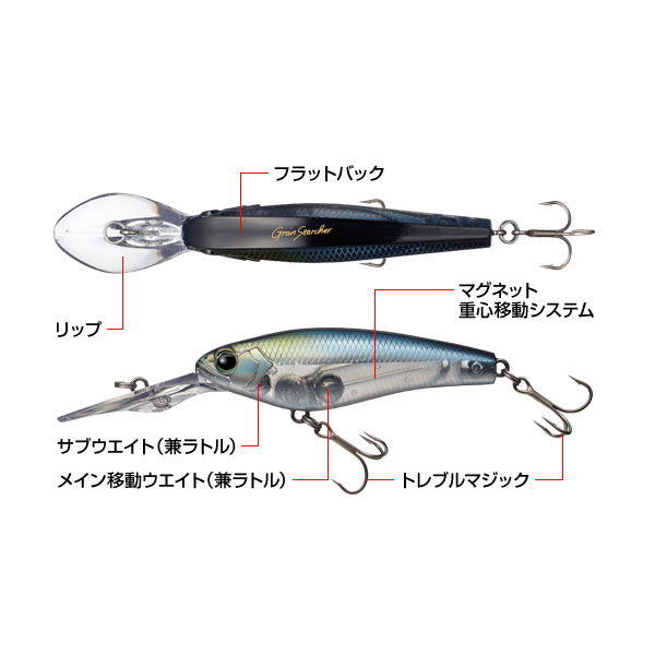 冬だけのシャッドじゃない。超スローから超高速巻きまで。 サーチと喰わせの同時進行を実現したクランキングシャッド。プレッシャーを掛けることなく程良くアピールできる小さすぎず大きすぎずの絶妙なサイズ感。ベイトタックルでカッ飛ぶ圧巻の飛距離。劇的な明滅&残像効果を生み出す超ハイピッチかつ激タイトなローリングアクション。クランクベイトとは違うナチュラルなシェイプ&アクションで、クランクベイトには反応しない魚を巻いて獲るための福島健こだわりのクランキングシャッド、それがグランサーチャー。きめ細やかな波動とベイトフィッシュライクなシルエットによる「シャッドならではのスローに見せて喰わせる能力」に「シャッドのレベルを超えた圧巻の飛距離」をプラスすることで、スレバスや低活性バスにより遠くからアプローチできるため、その喰わせ力が倍増。さらに、超ファストリトリーブにも対応する超安定性も兼ね備え、スローな喰わせのみならず、高速巻き×ビリビリ系の超振動とナチュラルなシェイプでバスに考える間や違和感を与えず口を使わせることもできます。その遠投性能&高速安定性、さらには、6.5cmというシャッドとしてはやや大きめのサイズから、風が吹き抜ける広大なフィールドでの広域高速サーチにも威力を発揮。しかも、ただ広く速く探るだけでなく、釣れるアクション&シェイプで広く速く探るという「サーチと喰わせの同時進行」を実現。大場所からピンスポットまで、超スローから超高速巻きまで、サーチにも喰わせにも。誰よりも早く答えにたどり着くために、一流のトーナメントアングラーが求める「魚を探す能力」と「喰わせの能力」を具現化したグランサーチャーは、冬だけでなくオールシーズン対応型のクランキングシャッドです。