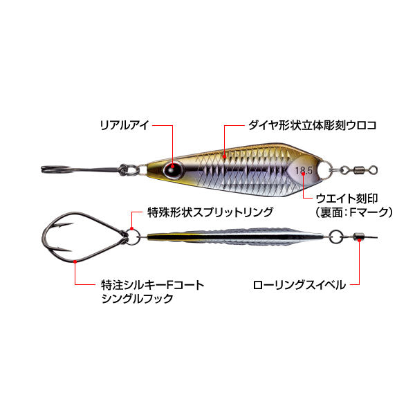 自重18.5g 推奨タックル Rod:ミディアムヘビー~ヘビーベイトロッド Line:12~16lb. リング(スナップ)サイズ【ラインアイ】 スイベル#6 フックサイズ#1