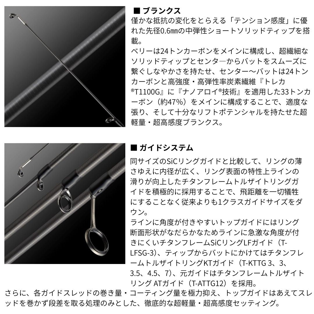 小型魚とのやり取りも楽しめる超繊細な感覚のロッドながら、バットには十分な強さを持たせることで、いざとなれば尺オーバーのターゲットにも余裕のポテンシャルを発揮。