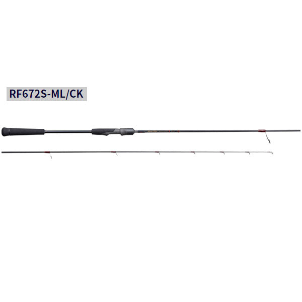 RF672S-ML/CK<br>TYPE S LENGTH( m [ft])2.00[6'7"] PCS.2 (O.S.H) ACTION RF CLOSED LENGTH(cm)160 LURE WT(g)Vertical 45-160 , Dotera MAX200 , Cast MAX75 LINE(PE/号)MAX1.2 DRAG MAX(kg)3 REAR GRIP LENGTH(mm)405 TIP DIA(mm)1.1 ROD WT(g)101 CARBON /GLASS(%)92/8