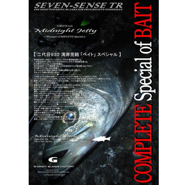 初代932BAIT、チタンフレームSiCリングガイド単体総自重3.7g。 二代目932BAIT、チタンフレームTORZITEリングガイド単体総自重1.8g。 その差マイナス1.9g、51.4%の軽量化。 初代932BAIT、ロッド総自重198g。 二代目932BAITロッド総自重000g(プロト)。 その差マイナス0g、0%の軽量化。 モーメントはそのままに現時点で可能な軽量化は全て施した。その上で、性能は初代を上回る。三代目JETTY93湾岸完結スペシャルがベイトモデル新規ブランクス設計にて完成。 マンドレルはスピニングと共有しているが、ブランクスの「曲がる位置」を完全にベイト専用にしている。 厳密にはティップ先端付近はベイトの方が硬く、バットは曲がる位置を下げている。 つまり、シャキシャキの胴調子。 胴調子とだけ書くと「ん、ダルイのか?」と思うかもしれないが、それは違う。 何せ、ティップには40tバットには46tが鎮座している。 軟らかいはずが無い。 要は、バットがパンパンだとキャスティングが全然楽しくない為、ベストルアーウエイトの18gミノーをフルキャストすると、硬めに設定したティップが、即座にバットへ移行し、しっかり曲がり、反発するように設計している。 ルアー・ライン・ロッド・リール・ノブ、これらが連れてくる感度情報の全てが「手の中」にあるベイトは、スピニングとは別世界の操作性を体感できる。 慣れてしまえば、レバーブレーキ以上の操作が可能なベイトは、バラシなど皆無に等しい。セブンセンスPEシリーズではジェッティーのベイトモデルは販売しなかった。 それは、先調子故にキャストが難しく、当時のリールでは人を極端に選ぶ為だったが、近年のPE専用ベイトリールの登場により、格段にキャストがし易くなり、バックラッシュの心配はほぼ皆無と言って良い。 是非、この「先調子パンパンベイト」のキャスト感を体験して頂きたい。