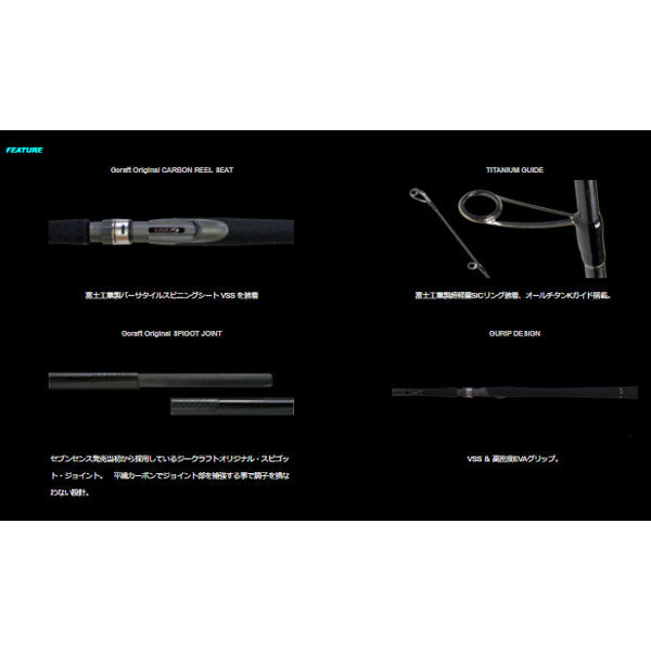SEVEN-SENSE SR」のコンセプトは、「SEVEN-SENSE PE」と同レベルのブランクスを設計すべく、30t+40tの原材料を駆使し、「トゲ」や「クセ」を排除した「扱いやすさ」を最重要視。 特に投げやすさを考慮した「ミート」しやすいティップとバットに調整したブランクスを採用。 意匠、各種パーツのコストを限界まで削ぎ落としたチタンフレームSiCリングと自社製造ブランクスで構成する実用性最重要視ブランド、それが、「SEVEN-SENSE SR」である。第二弾、MID STREAM 97 「River custom」。 中・大型河川で比較的流速(1m/S前後)の速い場所で、大型鱸族を狙う為に開発したこの「 MID STREAM 」は21g前後のミノーや21g~28gのバイブ主体のゲームにおいて、操作性を重視し、タメが利かせ易いバットに設計している。 よって、ランカークラス(5kg)に主導権を与えることなく余裕を持って対処でき、また、鉄板系28gまでのデイゲームや地域によってはサーフでのヒラメゲームにも適している為、リバーゲーム専用でありながら、その汎用性は実に幅広い。 ルアーウエイトの許容範囲は、シンペン8g~21g、バイブ15g~28g、ミノー12g~24g。 ベストルアーウエイトはシンペン21g、ミノー21g、バイブ25gが使い易いブランクスとなっている。 リールに関しては、繊細な操作性を重視するアングラーでPE1.0号~1.2号の場合は、2500番、C3000番クラスパワーファイトを重視するアングラーでPE1.2号~1.5号の場合は、3000番、4000番クラスが適している。