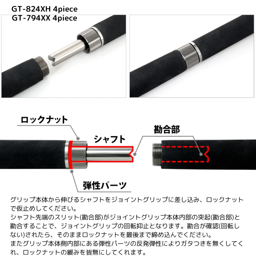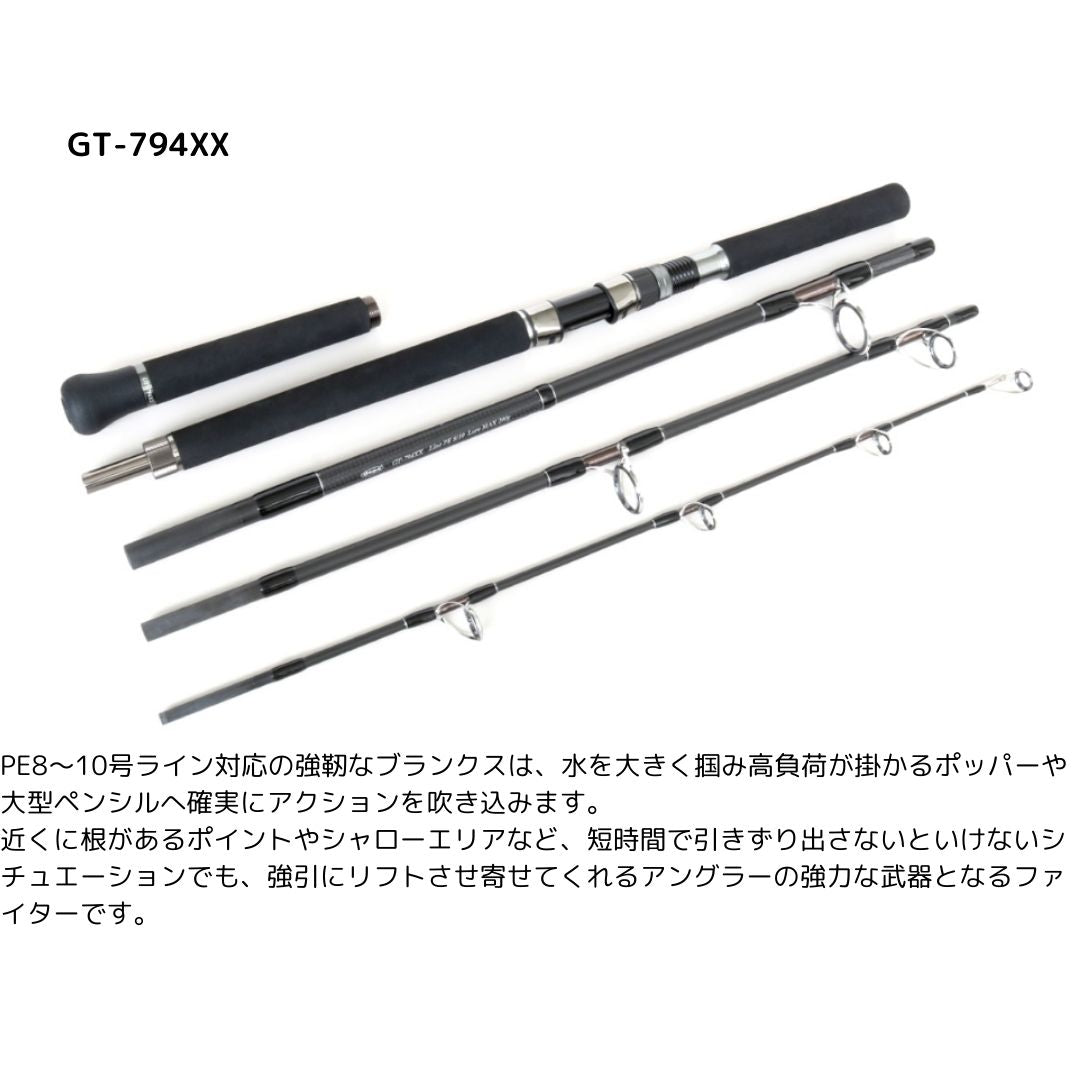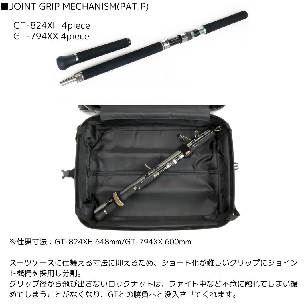 GT-794XX | GT-794XX | 7.9ft(2360mm) | 4本 | 1620mm | 600mm | 15kg | 460g | 770mm(ジョイントグリップ含む) | 160mm | 450mm(ジョイントグリップ含む) | 210mm | 15.6/3.6mm | MAX 200g | PE8/10 | 88% |