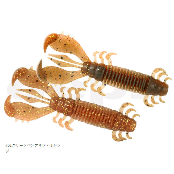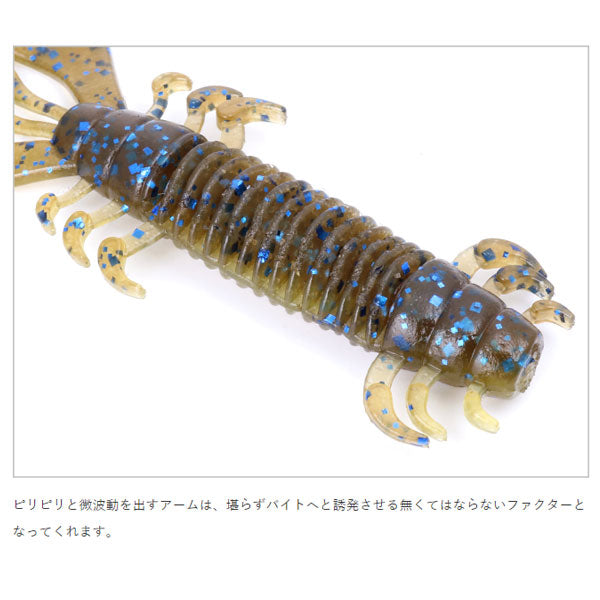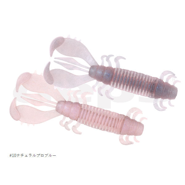 強波動を生む、コンパクトクロー。 大きくバタつかせ激しい水流撹拌動作をみせる大きいクローと、コンパクトボディながらも存在感をみせるリングボディは、バスを惹きつけることはもちろんのこと、確かな操作感を与えてくれるクローワームです。リトリーブやフォール、ボトムバンプやシェイキングなど、様々なアクションやリグに対応するマルチスペックは、プレッシャーのかかる難易度の高いシチュエーションやフィールドでも、高い次元で釣果をもたらしてくれるでしょう。
