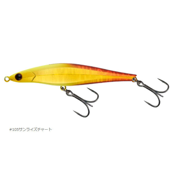 井上友樹が磯やサーフでの使用を前提に開発した元祖ヘビーシンキングペンシル。複雑な水流でもレンジキープしやすい特殊な形状を持ち、ミノーライクなウォブンロールアクションを発生。フォール時は水平姿勢でロールしながら身悶えするようにフォールします。ボディのサイドの多面構造と相まってミノーにスレたプレデターの本能を激しく刺激します。#3フックに極太ワイヤーを装備し、大型と真っ向から勝負できるセッティングにも井上友樹のこだわりが垣間見える。