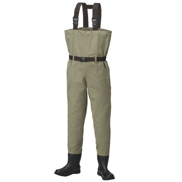 深場や波しぶきも安心なチェストウェダー。ショート丈のブーツにテフロン撥水加工を施した生地を使用。フェルトソールとラジアルソール、フェルトスパイクソールの3ソールをラインナップ。