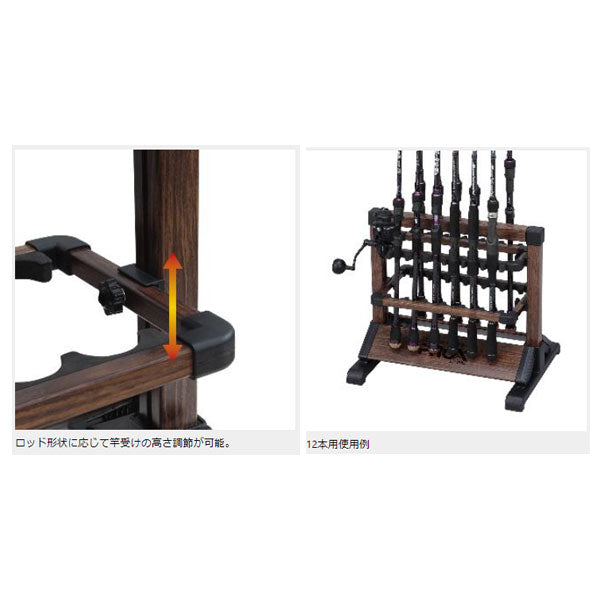 木目調仕上げのアルミロッドスタンド 軽量アルミ製ロッドスタンドに木目調シートをコーティング。加工性の良いアルミだからこそできる高さ調節機能や軽量さを活かしながらインテリアにも馴染む木目の風合いに仕上げました。軽量なので、室内での配置替えも容易。コンパクトな8本用・12本用、大容量の24本用の3ラインナップ。工具要らずで簡単に組み立てが可能。