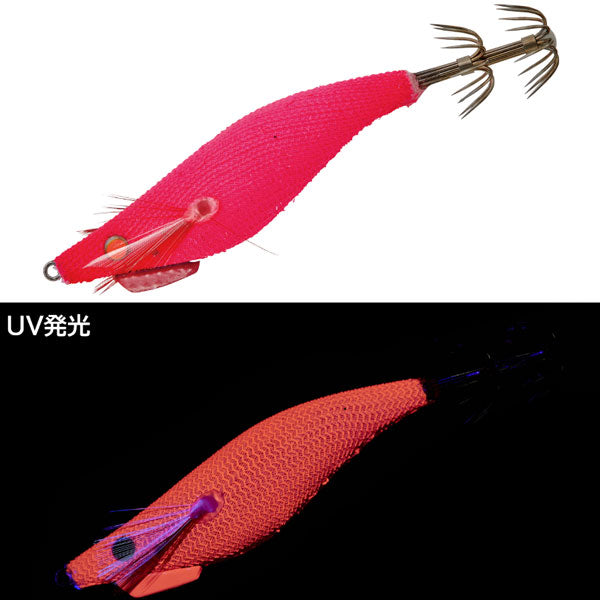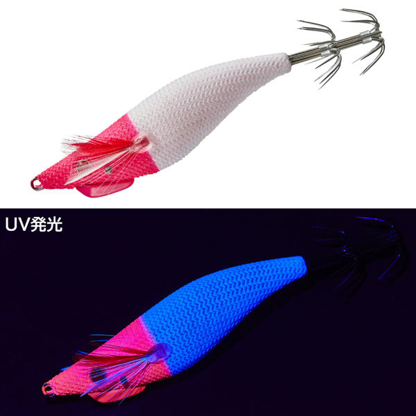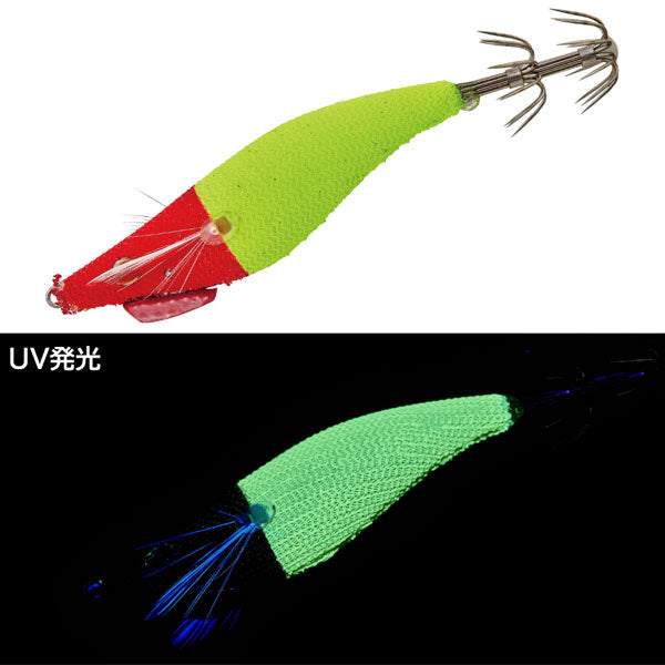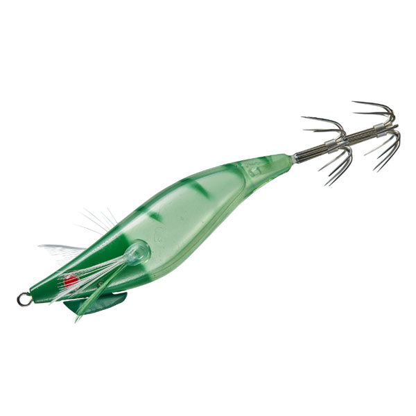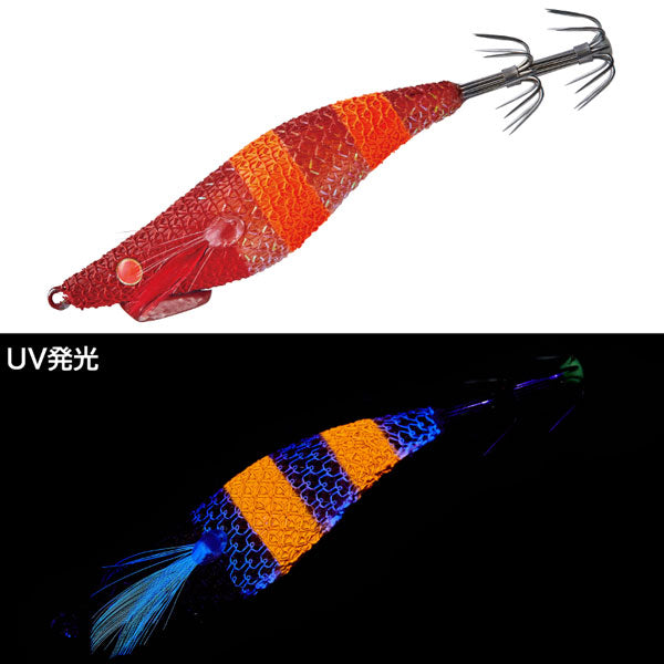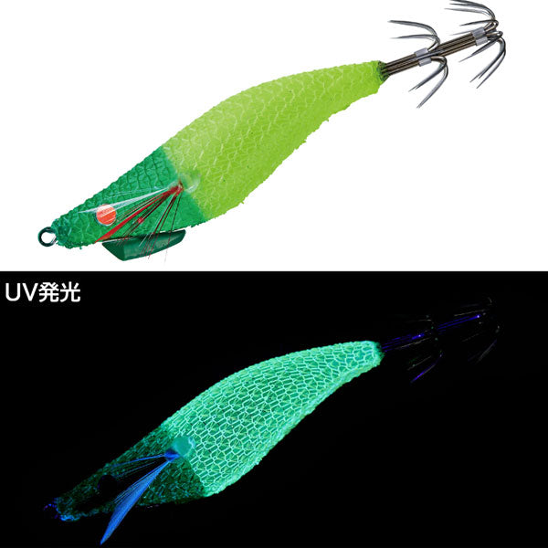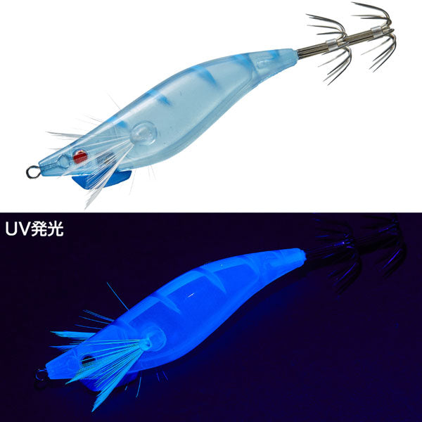 エギ型ドロッパーの特徴である、適度に水流を受け、安定した姿勢をキープ可能な性能を継承しつつ、イカメタル専用ドロッパーとしてアレンジを加えました。敢えて僅かにボディー外部に露出させたバランサーウエイトにより、イカの抱きやすい理想の水中姿勢を演出しつつ、誘いに対するレスポンスの良さを両立。ボディーサイズはエリア、状況を選ばない80mmサイズに設定しており、高活性時のリアクション狙い、浅ダナ、遅潮時などイカメタルが有効となる状況に適したスペシャルモデルです。