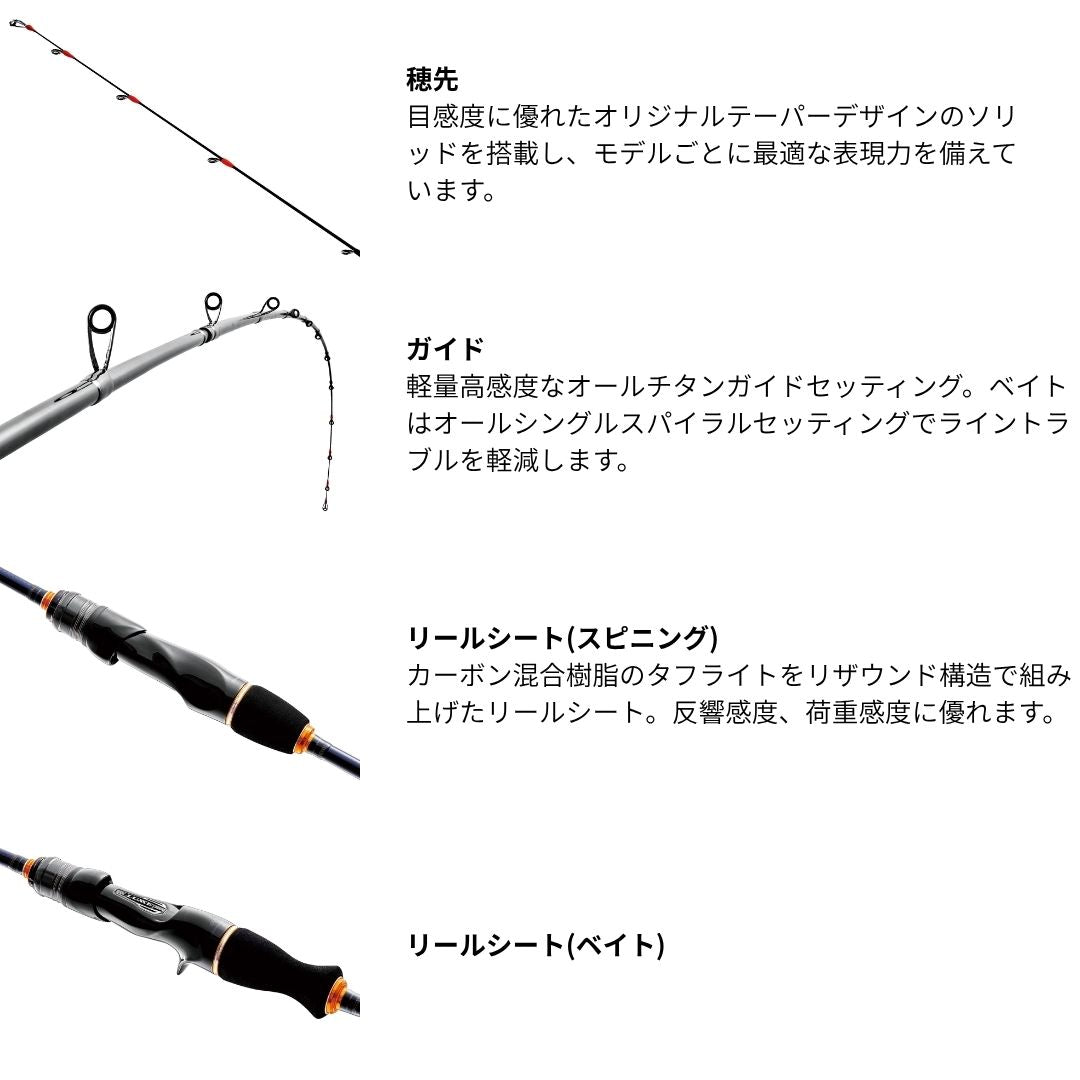 タイプ:スピニング パワー:ML 標準全長(cm/ft):224(7'4") 標準自重(g):82 仕舞寸法(cm):117 使用材料(%):C99.9 G0.1 継数(本):2 ルアーウエイト(g):20~70 適正ライン(PE/号):0.3~0.8 先径(mm):0.75 グリップ長(mm):325 JANコード:4549018762235