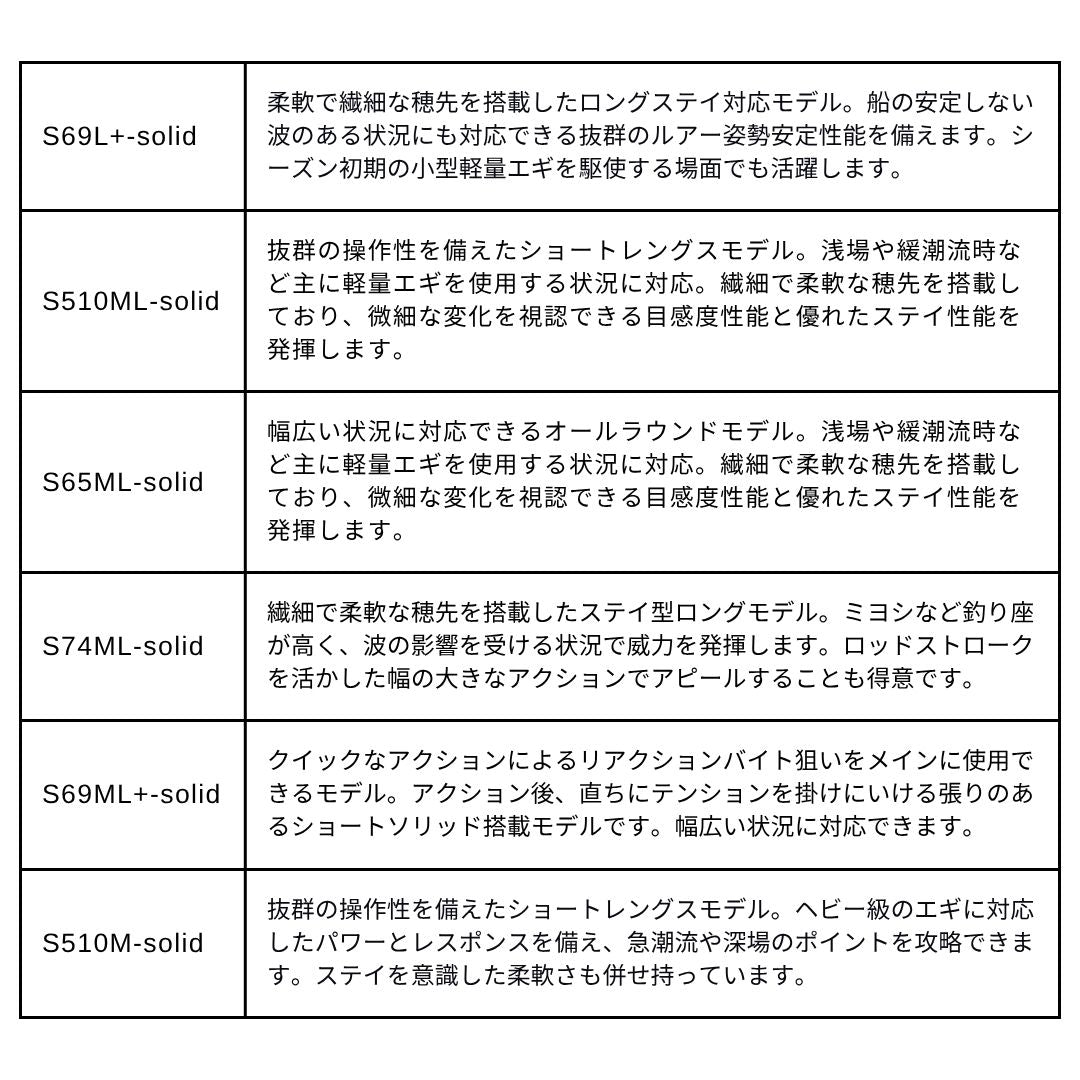 繊細で柔軟な穂先を搭載したステイ型ロングモデル。ミヨシなど釣り座が高く、波の影響を受ける状況で威力を発揮します。ロッドストロークを活かした幅の大きなアクションでアピールすることも得意です。