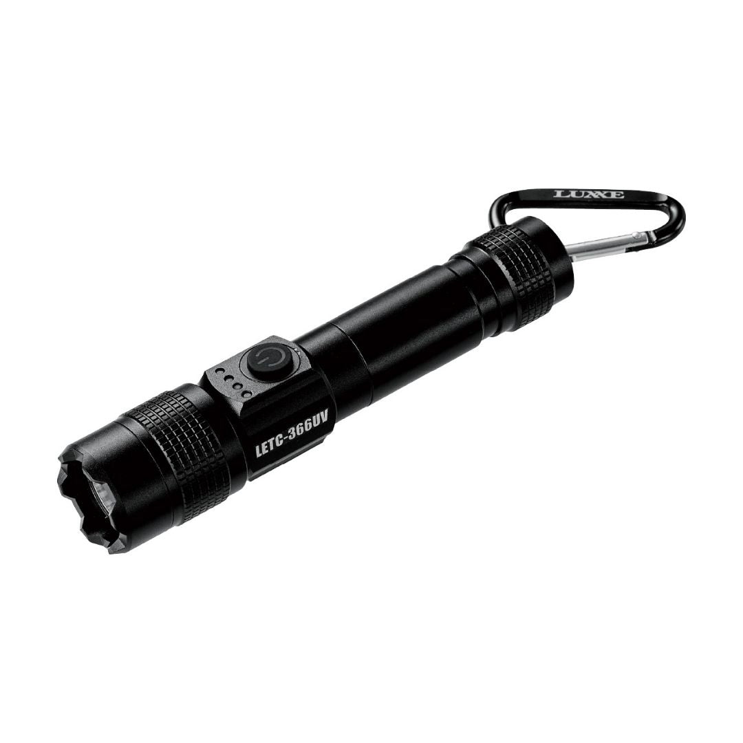一般的な紫色UVライトが395nm波長、青白い光のUVライトが365nm波長であり、明るい所で比較すると、365nm波長は青白く目視はでよく見えませんが、白い紙などを照らすとその強い光が目視できます。