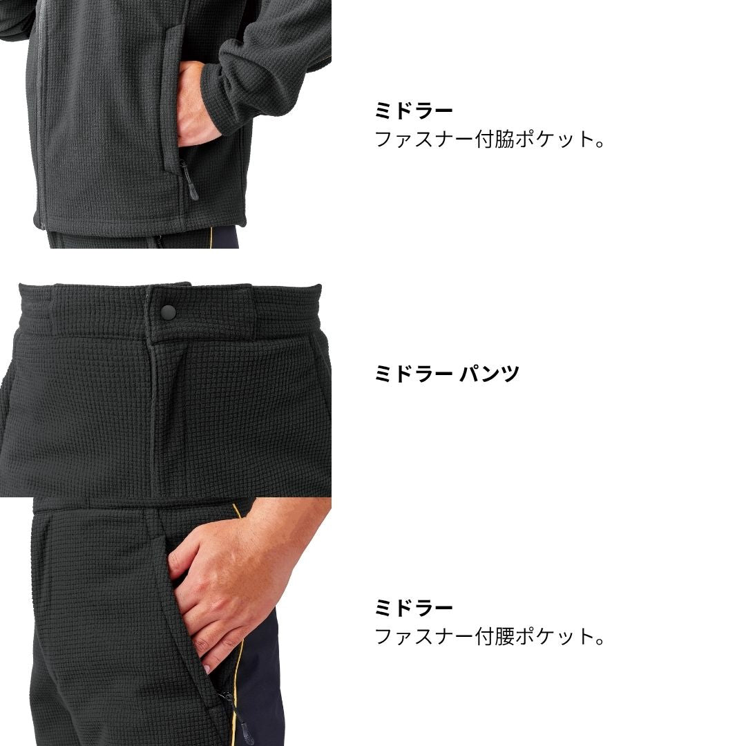 サイズ:M 身長(cm):160~170 胸囲(cm):84~92 腹囲(cm):78~94 尻囲(cm):~100 股下(cm):73 素材:〈アウター〉ナイロン100% 〈ミドラー〉ポリエステル100% 〈ミドラー別布〉ナイロン100% 重量:〈アウター〉約1.3kg(L) 〈ミドラー〉約1.3kg(L) 耐水圧:30,000mm 透湿性:10,000g/m2・24h