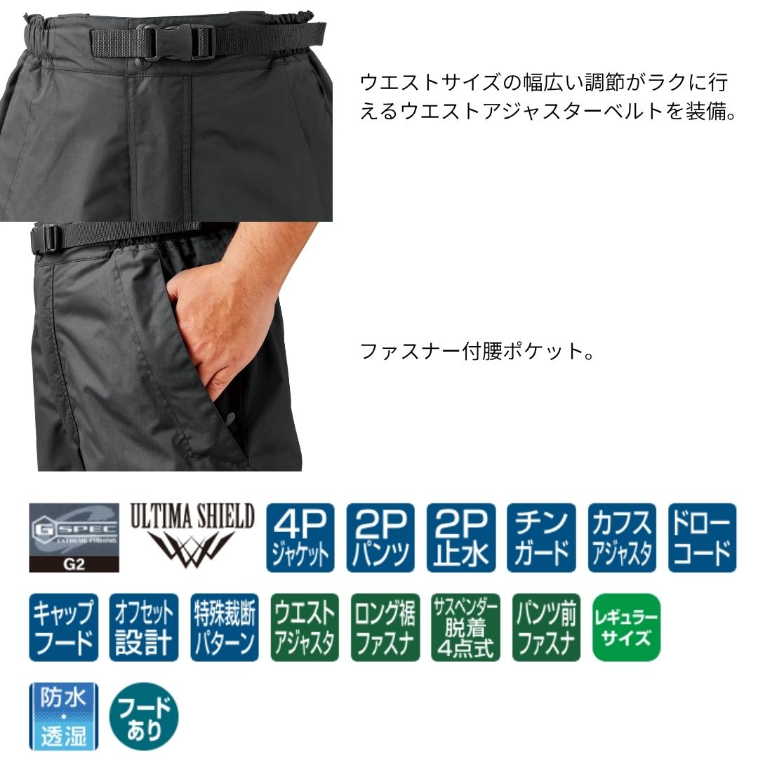 サイズ:M 身長(cm):160~170 胸囲(cm):84~92 腹囲(cm):78~94 尻囲(cm):~100 股下(cm):73 素材:〈本体〉ナイロン100% 〈裏地〉ポリエステル100% 重量:約1.04kg(L) 耐水圧:20,000mm 透湿性:6,000g/m2・24h