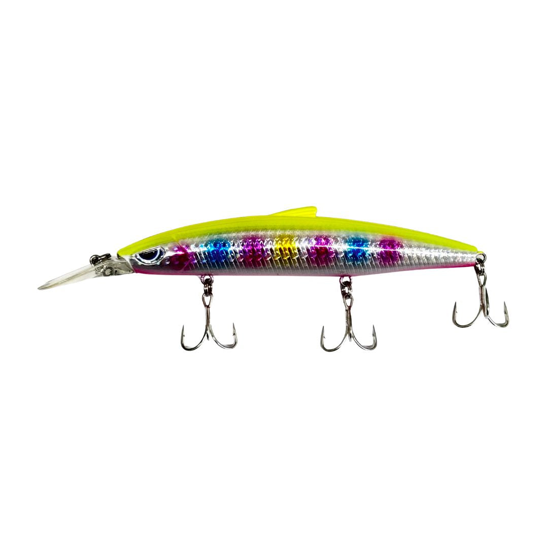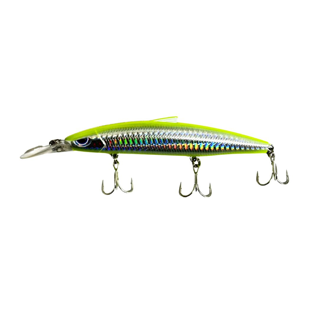 堤防、河川河口部、磯などあらゆるポイントのバイトが出やすいレンジをしっかり泳ぎ切り、広くサーチできるルアー。堤防・磯等から広範囲&中層に潜むシーバスを狙うことができるロングリップミノー。