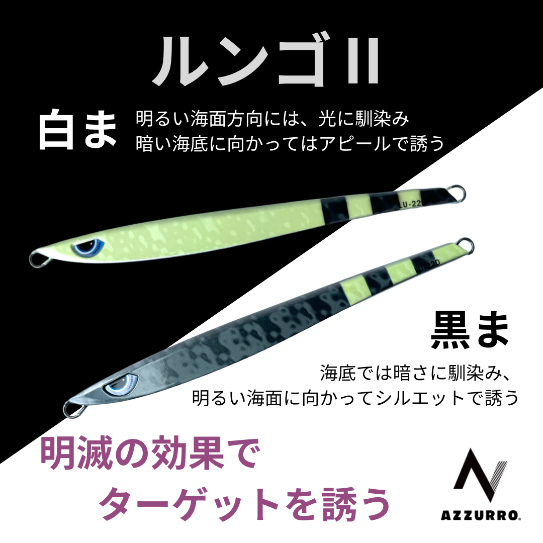 アズーロの代表的なメタルジグ3種であるブレードⅡ、ヒラメタルⅡ、ルンゴⅡに、