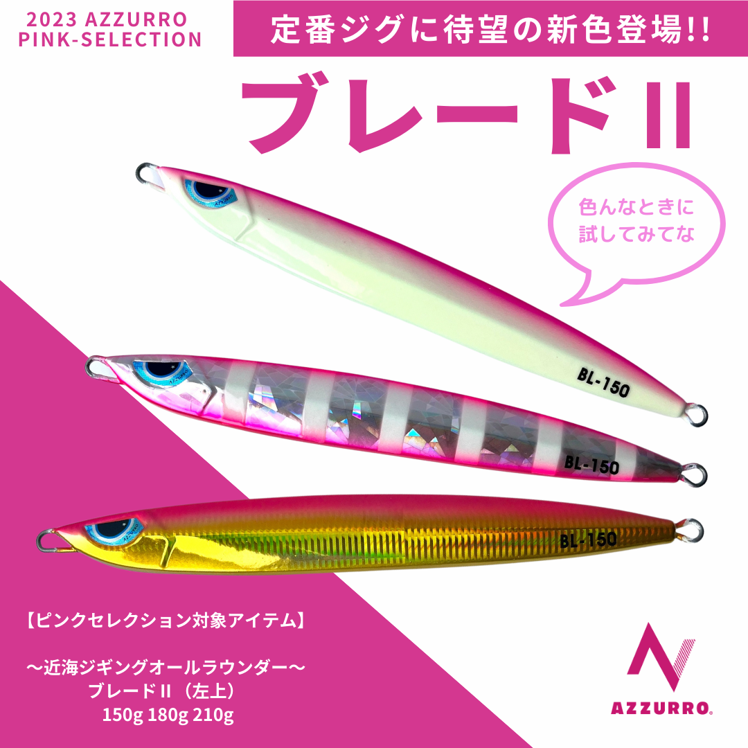 アズーロの代表的なメタルジグ3種であるブレードⅡ、ヒラメタルⅡ、ルンゴⅡに、