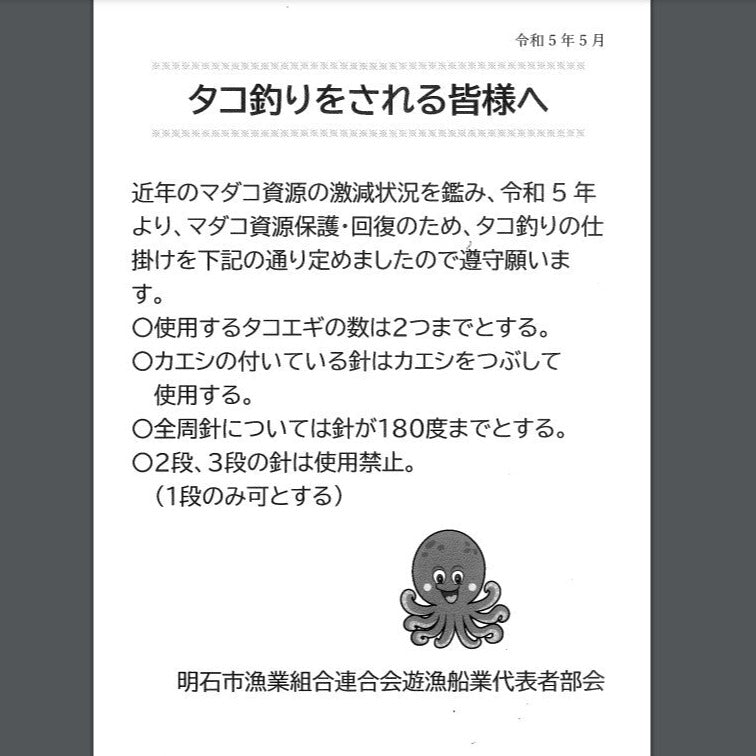 半笠(半傘)タイプとは・・・2023年5月より、兵庫県明石市漁業組合のタコ釣りルールが変更になり、半笠(半傘)タイプのみ使用が可能になっています。全笠(全傘)タイプの使用が禁止になりました。
