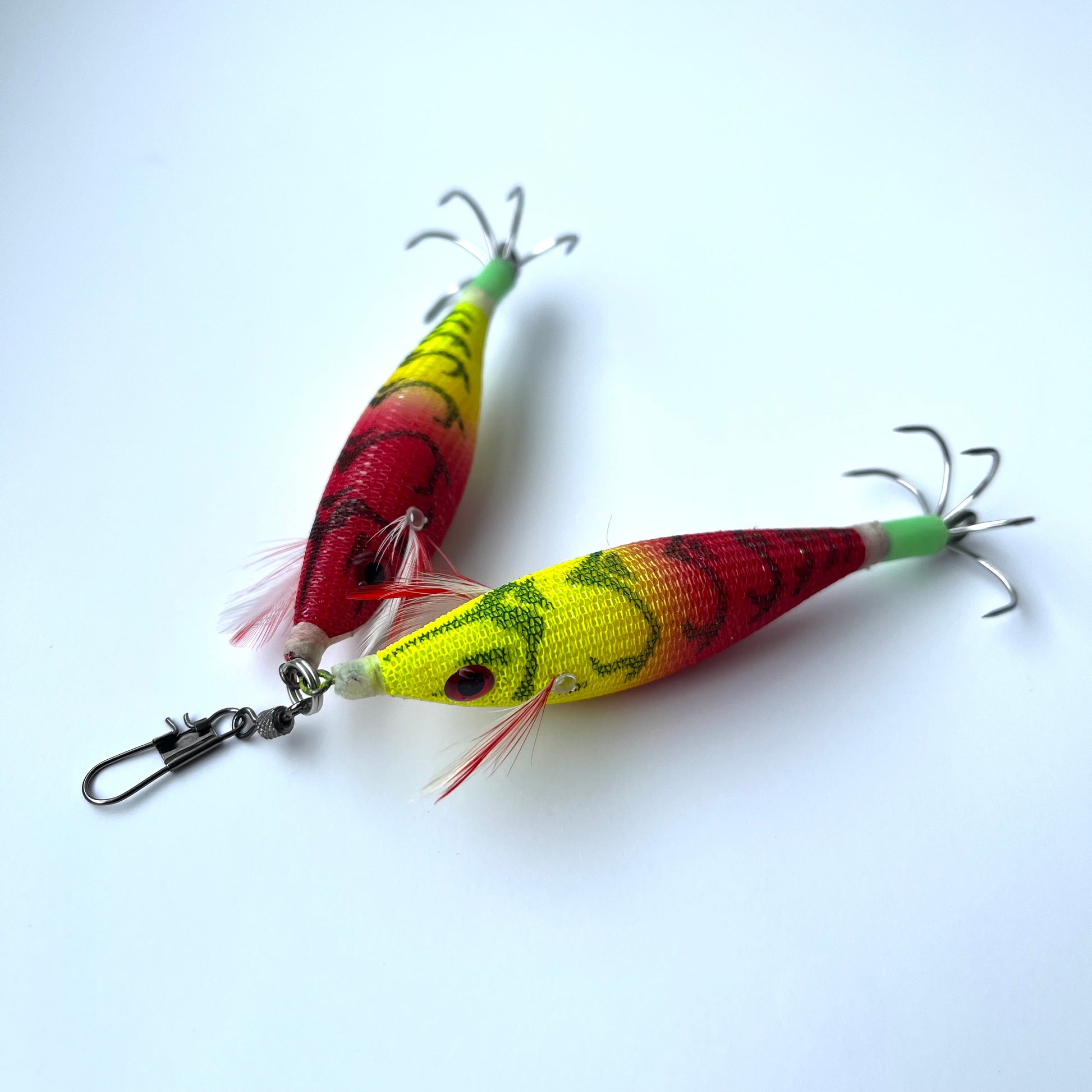 船・岸壁などからタコをバーチカルに狙う釣りに最適な、ダブルアピールのツイン仕様のタコスッテのSサイズに、半笠(半傘)タイプが登場!!