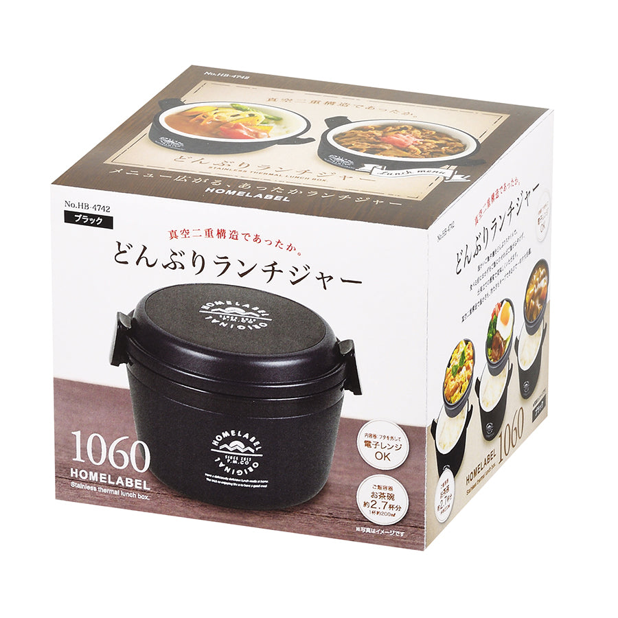 ホームレーベル どんぶりランチジャー1060(ブラック) HB-4742