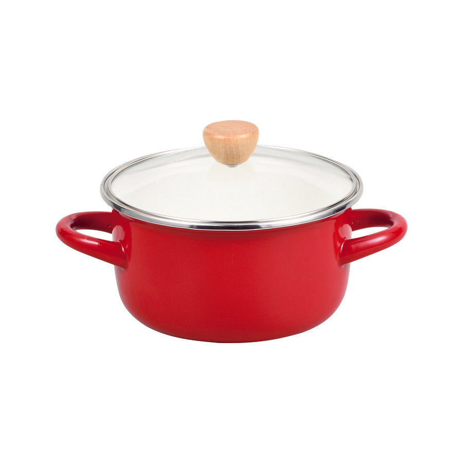 プチクック ホーローガラス蓋深型煮込鍋16㎝(レッド) HB-4877