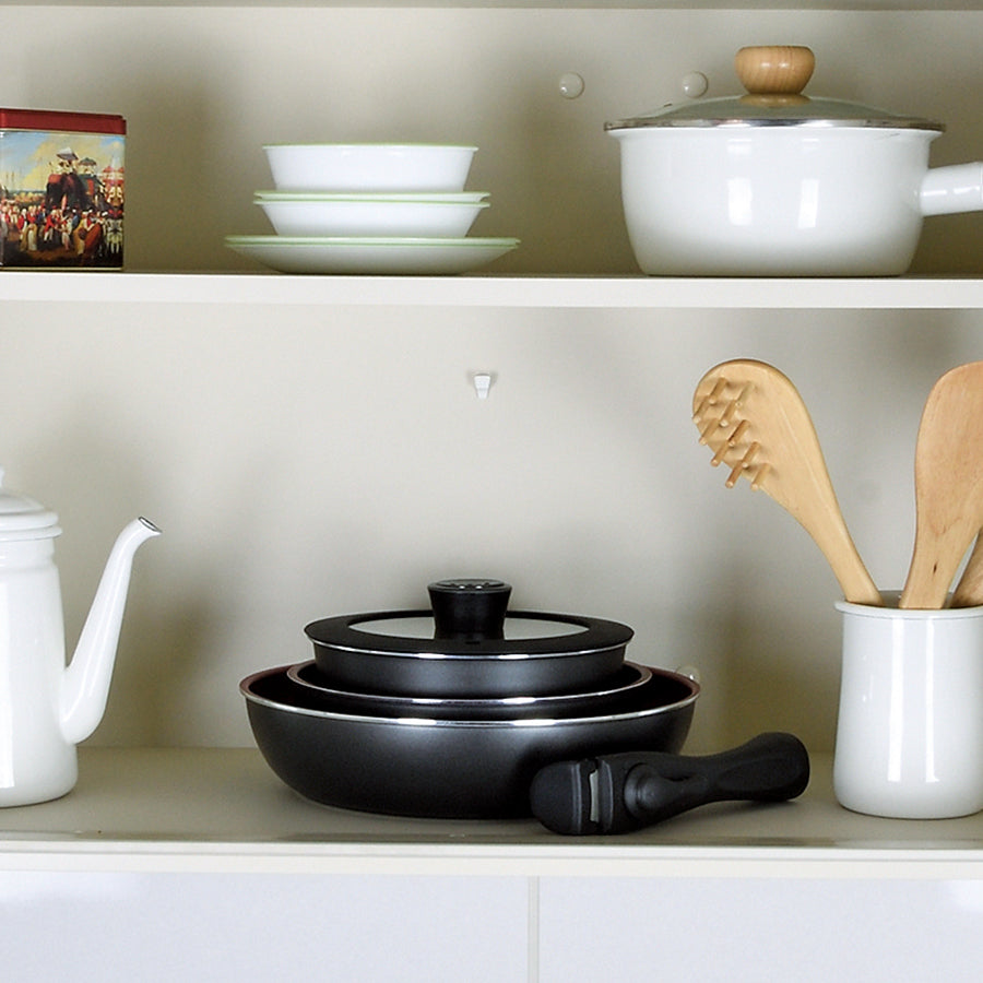 ■セット内容:・マルチポット18cm・いため鍋20cm・フライパン20cm・フライパン26cm・ガラス蓋18cm・専用ハンドル×2