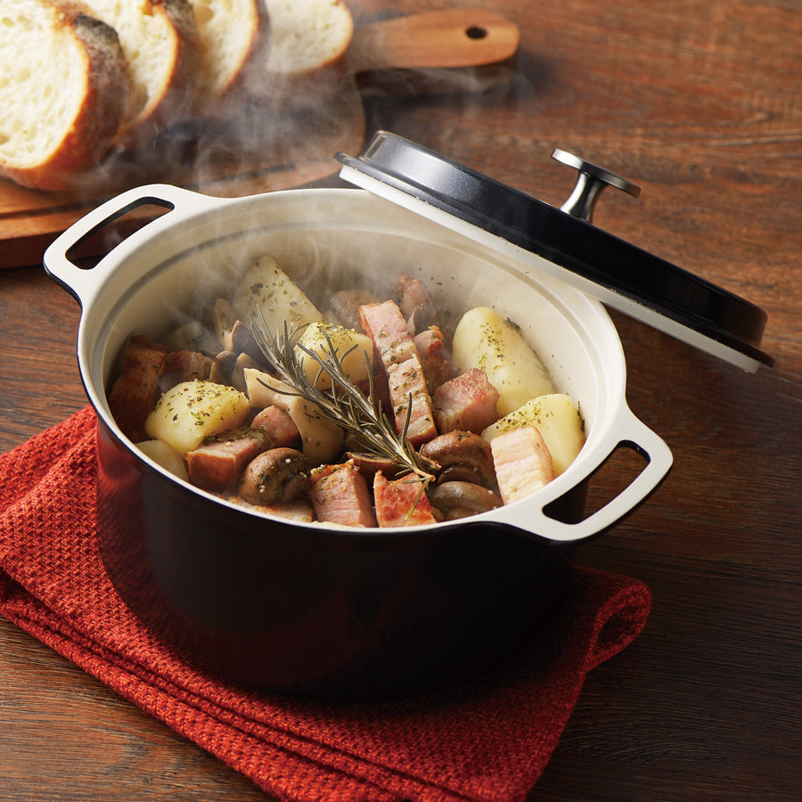 無水調理ができるセラミック加工IH対応両手鍋18㎝(ブラック) HB-5724
