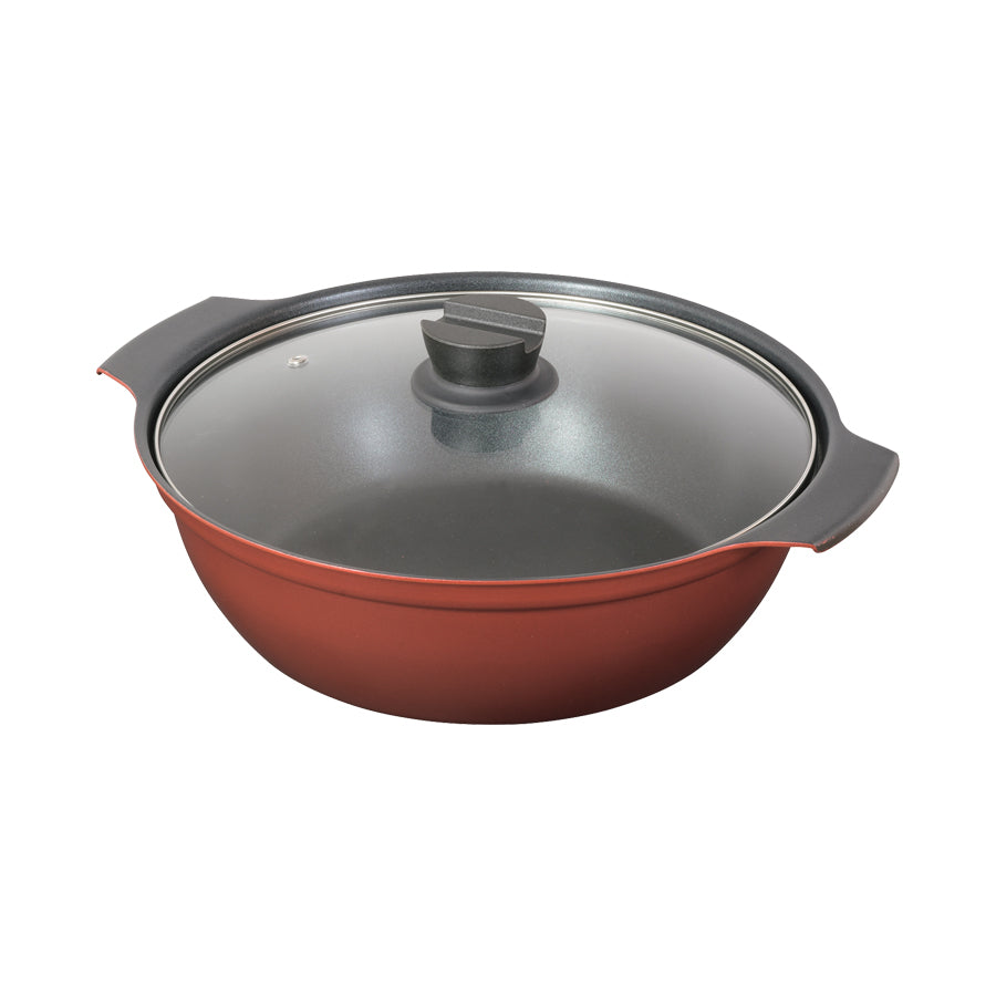 旨味 ふっ素加工IH対応ガラス蓋付卓上鍋28㎝ HB-6966