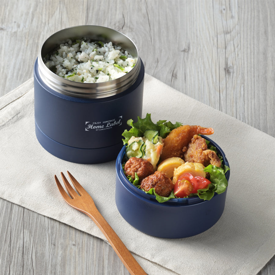 ホームレーベル ステンレス連結式ランチジャー850(ネイビー) HC-10