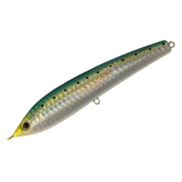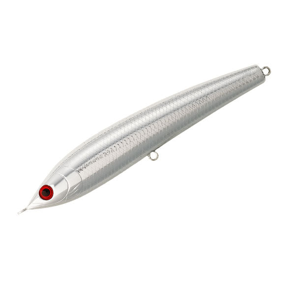 水面最強伝説。レッドペッパーのオリジナルサイズ。 レッドペッパーシリーズは、"襲われやすい"小魚を徹底してイミテートするためのペンシルベイトです。水面を左右に小刻みに駆け、一瞬ダイブして飛び上がる。その姿はまさに群れから離脱し追われるベイトフィッシュ。潜る、跳ねる、うねる。小魚逃走アクションを簡単に引き出せ、安定した機能と遠投のしやすさで人気です。あらゆるプラグで攻め、叩かれた後にもなぜかこれにだけは反応する不思議な力を秘めています。表層を意識するフィッシュイーターを狂わせる切り札です。